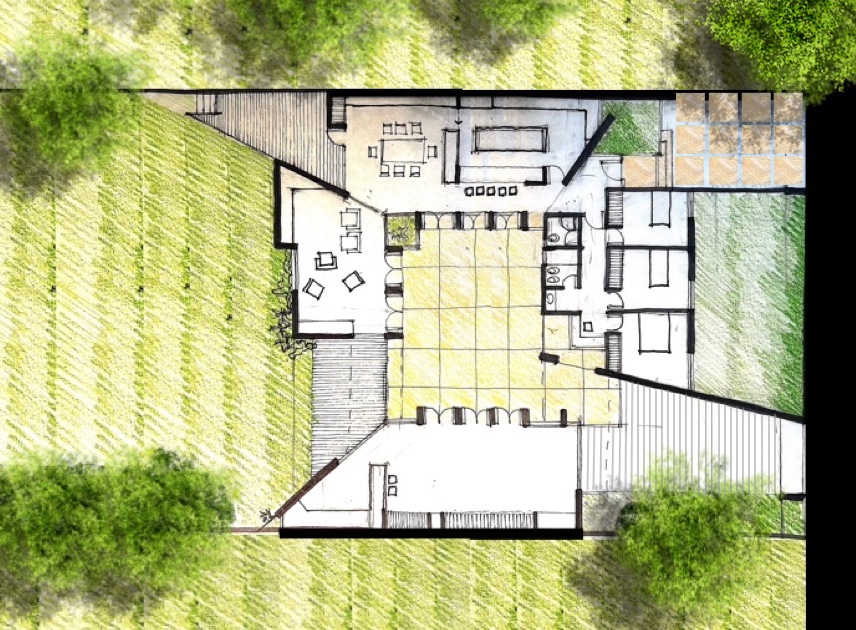 …”anteproyecto de una vivienda unifamiliar en relación a un patio central y unificada con una galería perimetral, pero separando el Sum o garaje, de la totalidad de la vivienda”…